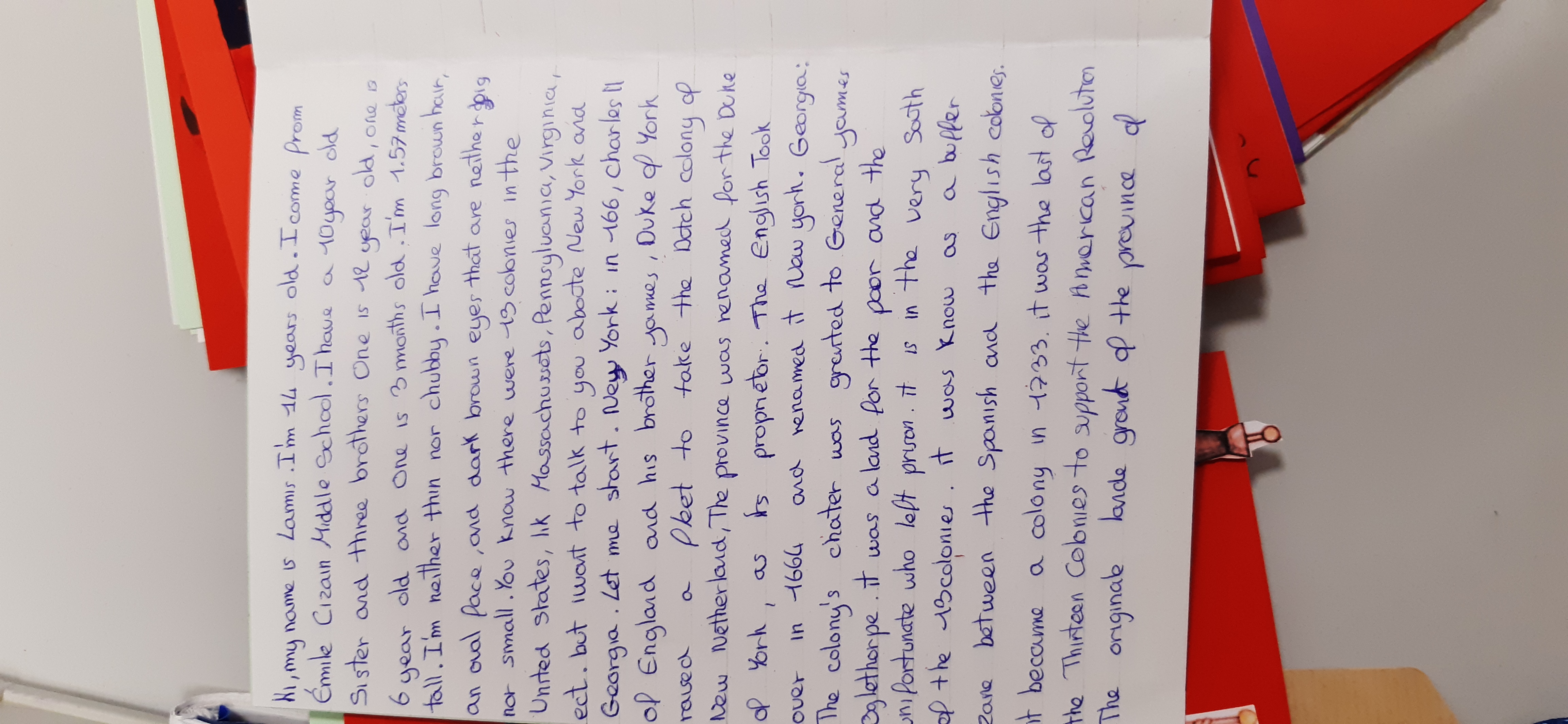 Les premières lettres ont été écrites et envoyées aux USA et au lycée. Le thème étant l'anniversaire de l'Indépendance des USA. Nous avons reçu les lettres des lycéens et nous attendons patiemment celles des Américains.