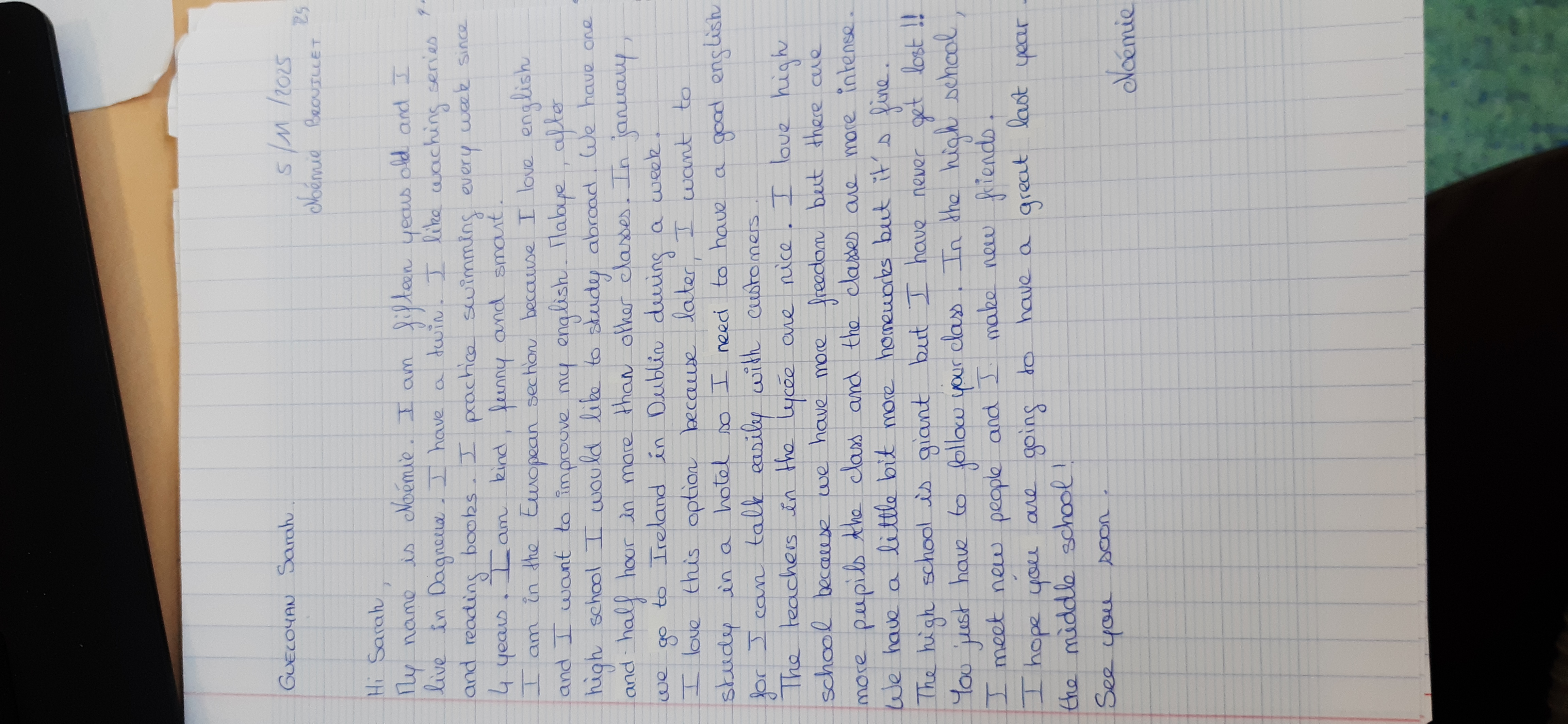 Je félicite les élèves de 3ème A qui s’investissent pleinement dans ce projet de correspondance.